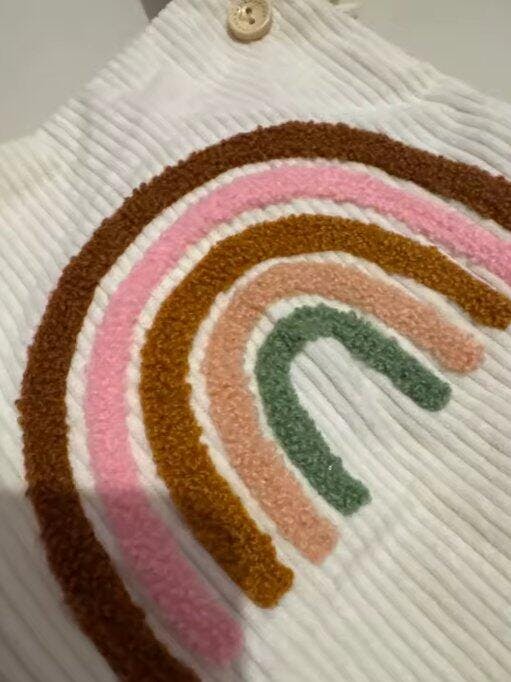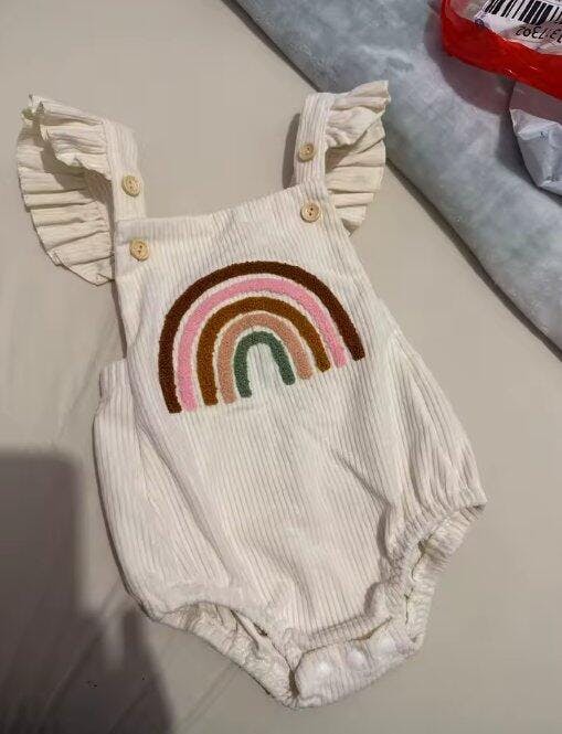 This adorable summer romper is designed to keep your baby girl fresh, comfortable, and stylish. Featuring a charming rainbow embroidery on soft ribbed cotton and sweet ruffled straps, it’s the perfect outfit for warm-weather days, photos, playtime, and special moments.