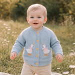 This adorable knitted cardigan and hat set is designed to keep your little one warm, comfy, and irresistibly cute. The soft acrylic knit is gentle on delicate skin, featuring charming embroidered geese with tiny bows for a sweet, playful look. Perfect for cooler days, outings, and everyday wear.