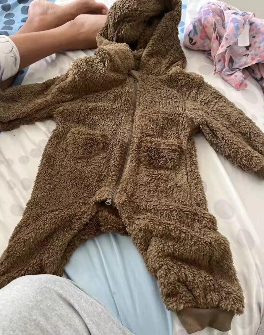 Made from plush fleece fabric, this one-piece keeps babies warm without restricting movement. The adorable hood with bear ears adds a playful touch, while the full-length zipper makes dressing and diaper changes quick and easy.