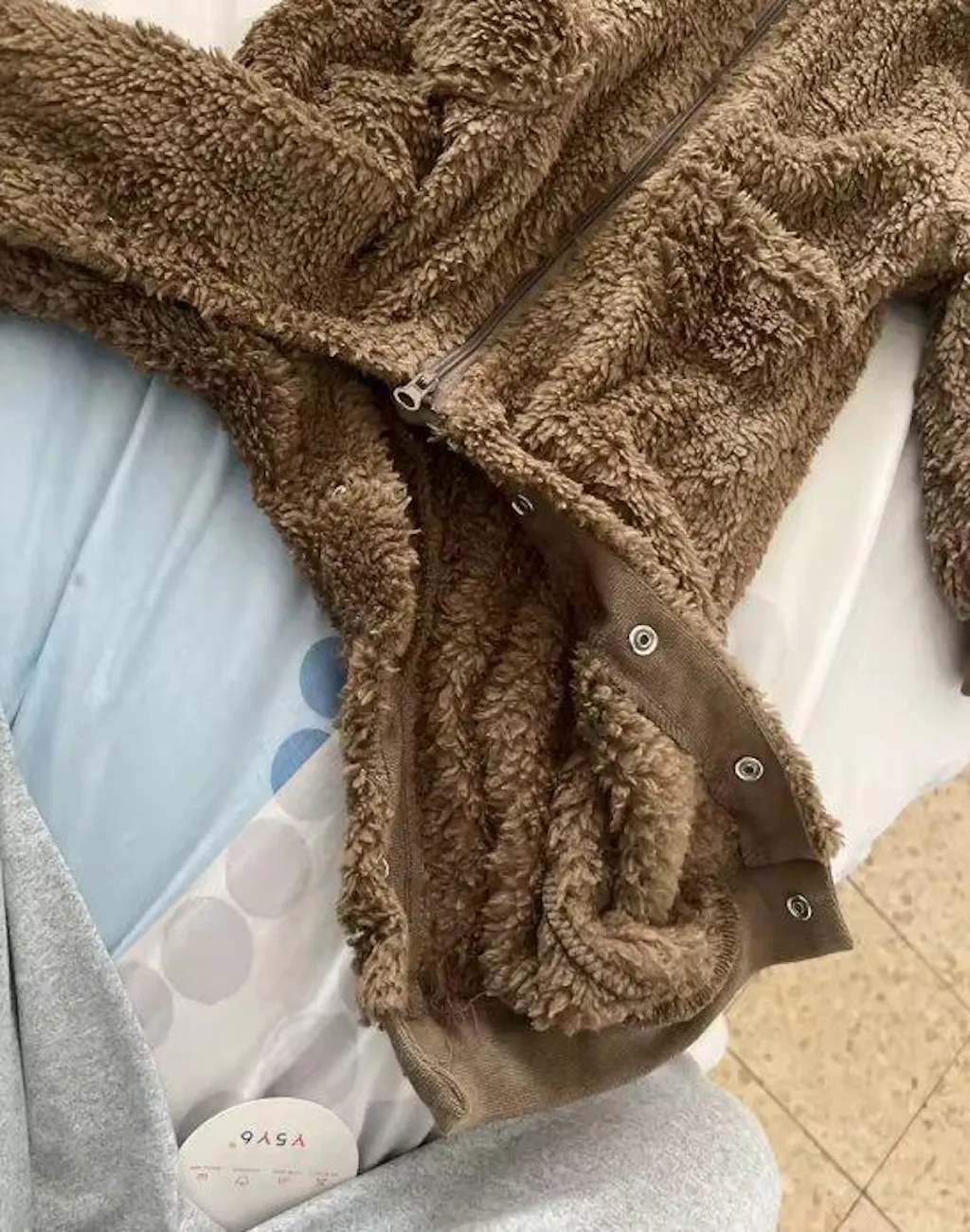Baby Fleece Hooded Jumpsuit – Cozy Bear One-Piece (0-24M)