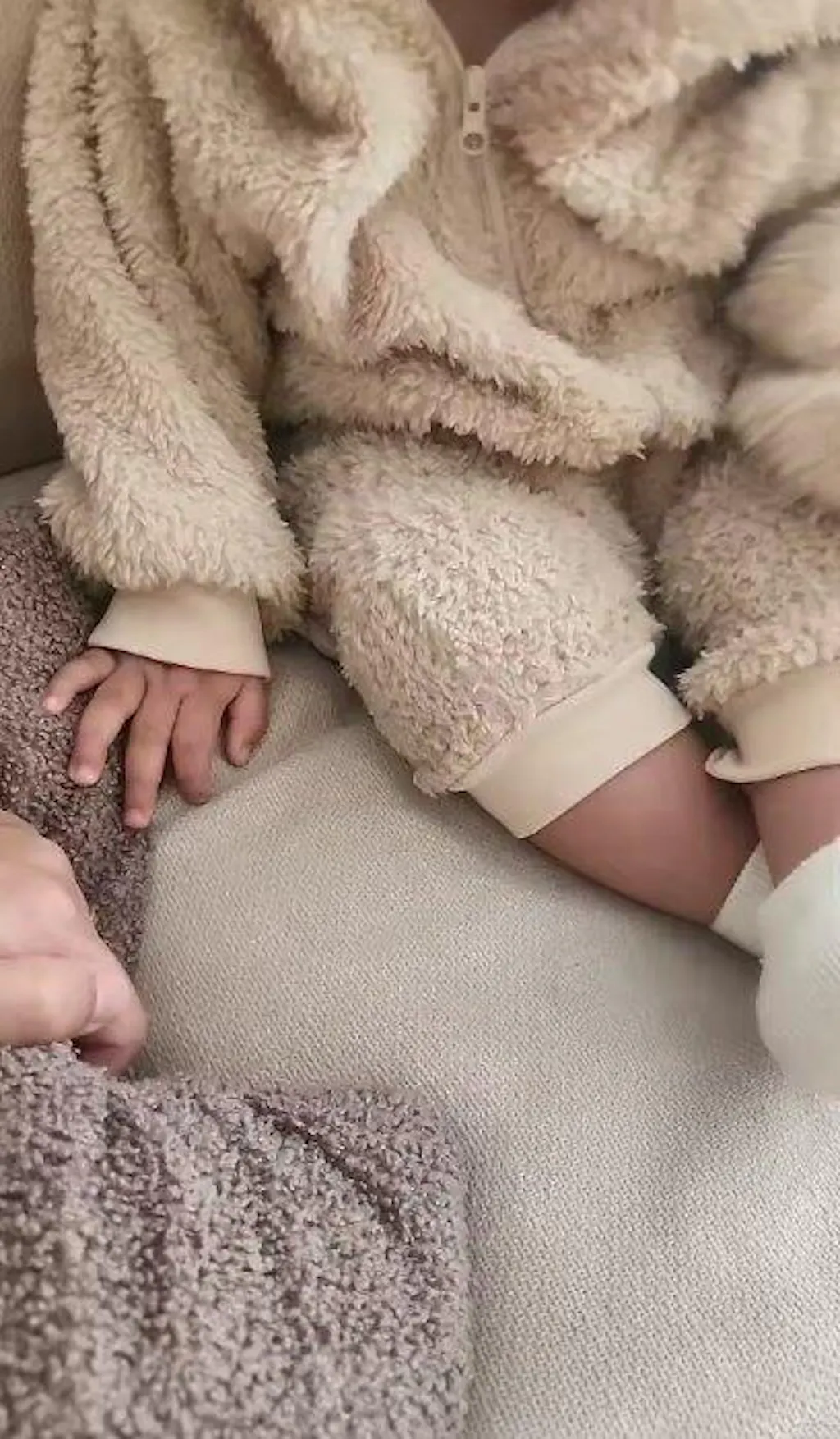 Wrap your little one in warmth and comfort with this ultra-soft fleece hooded jumpsuit, designed for cooler days and cozy moments at home.